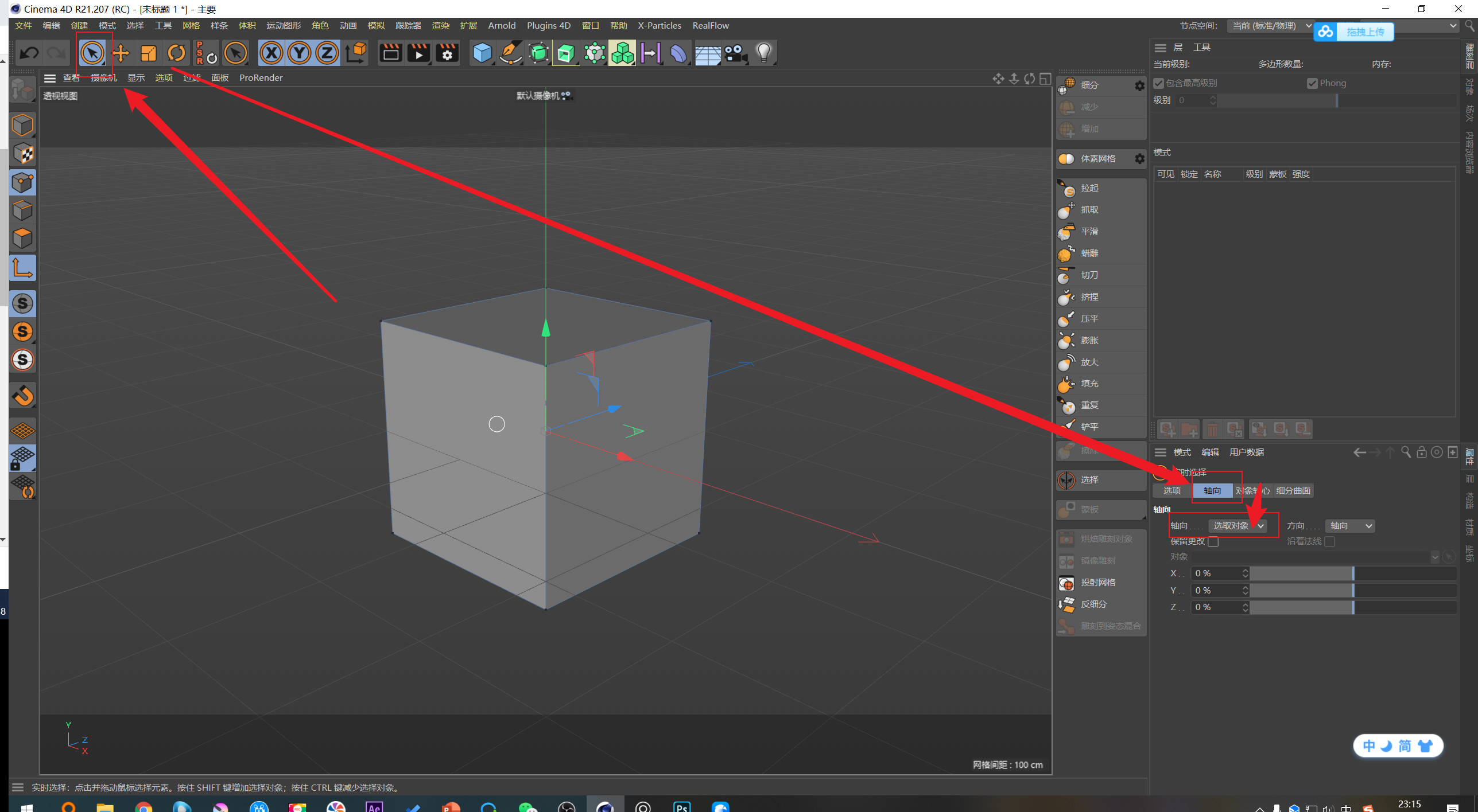 1、【点模式下-选择工具属性里-轴向-选取对象】